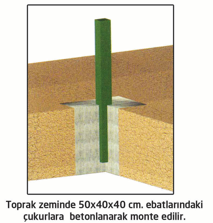 Montaj: Beton veya metal direklerle ankrajlı sistem